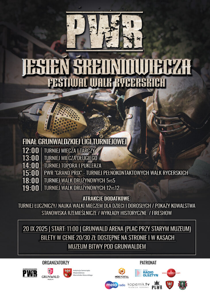 Muzeum Bitwy pod Grunwaldem oraz federacja PWR – Pełnokontaktowe Walki Rycerskie zapraszają na festiwal walk rycerskich „JESIEŃ ŚREDNIOWIECZA”!