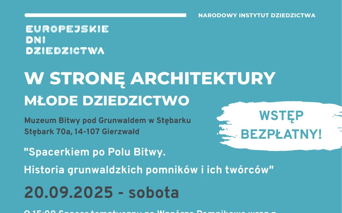 O godz. 15:00 spod kas muzeum wyruszy tematyczny spacer pt. „Spacerkiem po Polu Bitwy. Historia grunwaldzkich pomników i ich twórców”. Nasz przewodnik opowie o powstaniu pomników, przybliży sylwetki ich twórców oraz podzieli się ciekawostkami związanymi z samą bitwą.